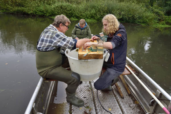 Im Herbst findet die Elektrobefischung der Niers statt, bei welcher wir Freiwilligen sehr aktiv in die Arbeit eingebunden werden. Das ist zwar bisweilen sehr anstrengend, gibt uns aber die einmalige Möglichkeit, direkt mit den erstaunlich vielseitigen und artenreichen Fischbeständen der Niers und ihrer Nebenflüsse in Kontakt zu kommen. Mit der Zeit haben wir dabei die meisten Arten kennengelernt und durften irgendwann selbst die Fische, Krebse und Neunaugen bestimmen und messen.