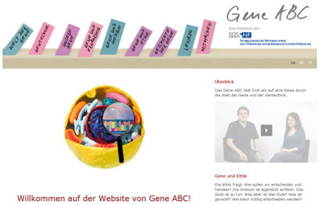 DNA, das ,Molekül des Lebens‘, fasziniert Forscherinnen und Forscher seit seiner Entdeckung vor fast einem halben Jahrhundert. Doch was ist DNA genau? Wie sieht sie aus? Was sind Gene und wie wird mit Genen gearbeitet? Das Gene ABC, eine Website des Schweizerischen Nationalfonds lädt ein zu einer Reise in die Welt der Gene. Die dreisprachige Website (Deutsch, Französisch und Italienisch) wird sowohl von Biologielehrpersonen als auch von Jugendlichen gern und regelmässig genutzt.