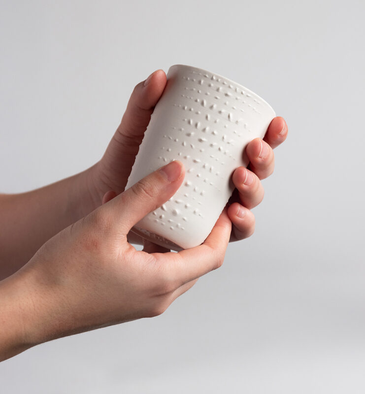 Foto: Der Porzellanbecher „Touch and Relax“ von Alina Wedler wurde in der Kategorie „Gesundheit und Wohlergehen“ ausgezeichnet. Foto: Fachbereich Design/ HSNR